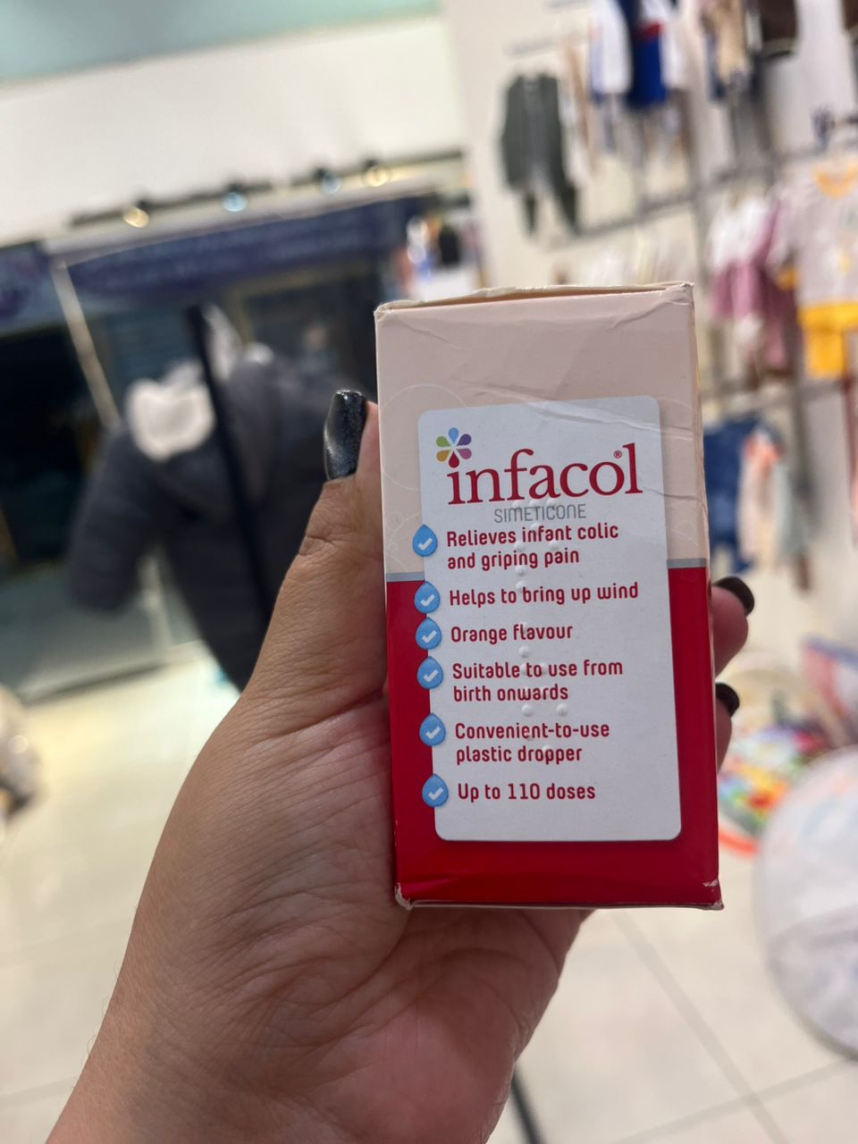 قطره ضد نفخ اینفاکول (Infacol) محصولی اورجینال و باکیفیت ساخت آلمان است که با فرمول مؤثر خود به رفع سریع نفخ، دل‌درد، کولیک و ناراحتی‌های گوارشی نوزادان کمک می‌کند. ماده مؤثره‌ی این محصول سیمتیکون (Simeticone 40mg/ml) است که با کاهش حباب‌های گازی در معده و روده، موجب آرامش، خواب راحت و کاهش گریه‌های ناشی از دل‌درد نوزاد می‌شود.