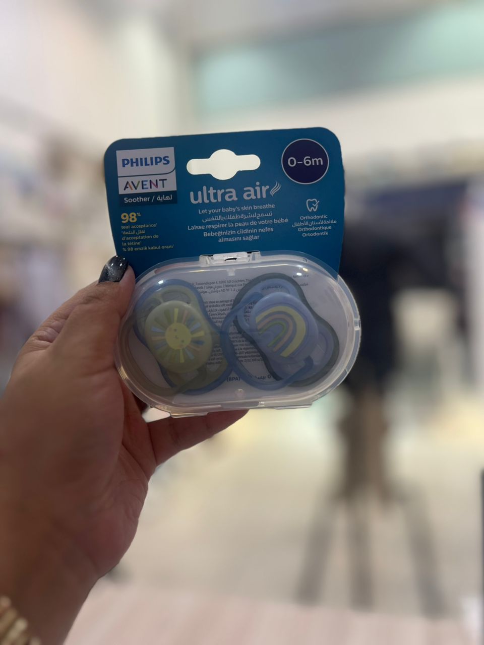 پستانک Ultra Air فیلیپس اونت، مناسب نوزادان ۰ تا ۶ ماه، با سری سیلیکونی نرم و ارتودنسی که رشد طبیعی دهان و فک نوزاد را حمایت می‌کند. منافذ بزرگ هوا باعث تهویه پوست و کاهش تعریق می‌شوند و بدون BPA، کاملاً ایمن برای پوست حساس نوزاد است.